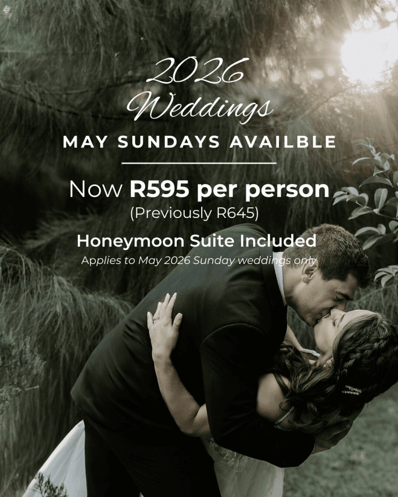 Bell & Blossom is a one-of-a-kind wedding venue in Pretoria, nestled in a forest-like surrounding with a translucent roof, exposed timber trusses and impressive chandeliers. Hundreds of fairy lights and a large cosy fireplace make the venue come to life at night, creating a magical and unforgettable evening with friends and family. Suitable for 45 – 200 guests.